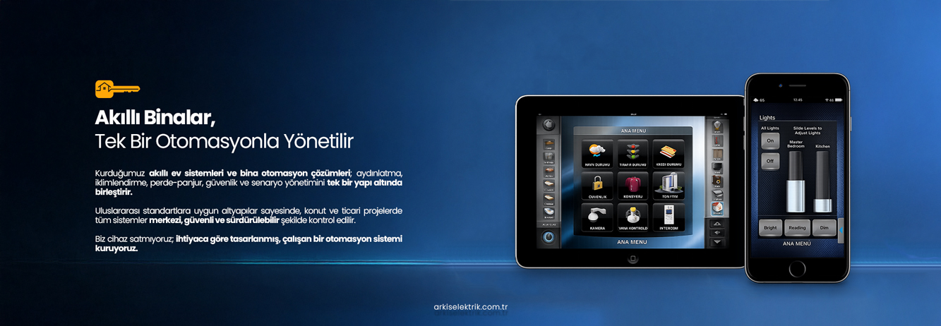 Arkıs Elektrik, modern yapıların ihtiyaç duyduğu akıllı bina altyapılarını uluslararası olarak bölünmüş, uygun biçimde tasarlayıp uygulamaktadır. Özellikle EIB/KNX tabanlı otomasyon sistemleri başta olmak üzere; aydınlatma, iklimlendirme (HVAC), perde–panjur, enerji yönetimi, güvenlik ve multimedya sistemlerini tek bir merkezden kontrol edilebilir hale getiren bütüncül çözümler sunuyor. Bu sistemleri; Sesli komutlar, dokunmatik paneller ve mobil cihazlar (akıllı telefon, tablet) üzerinden internet bağlantısı aracılığıyla güvenli biçimde yönetilebilmektedir.