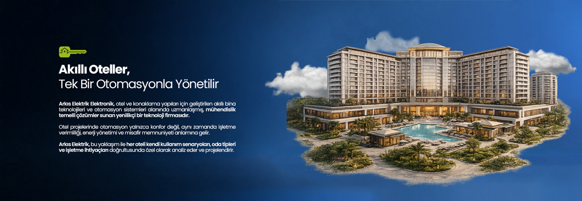 Arkıs Elektrik Elektronik Proje İnşaat Otomasyon Sanayi ve Ticaret Ltd. Şti., otel ve konaklama bölümleri için bölümlere ayrılmış akıllı bina teknolojileri ve otomasyon sistemlerine dayanıklı, mühendislik mühendislik çözümleri sunan gelişmiş bir teknoloji yapısıdır. Kuruluşundan bu yana; yüksek teknoloji, çözüm odaklı yaklaşım ve sektörel deneyimi bir araya getirerek konaklama projelerinde fark yaratan uygulamalara imza atmaktadır.